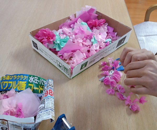1枚1枚お花紙をひねったり折ったりし箱いっぱい完成しました!