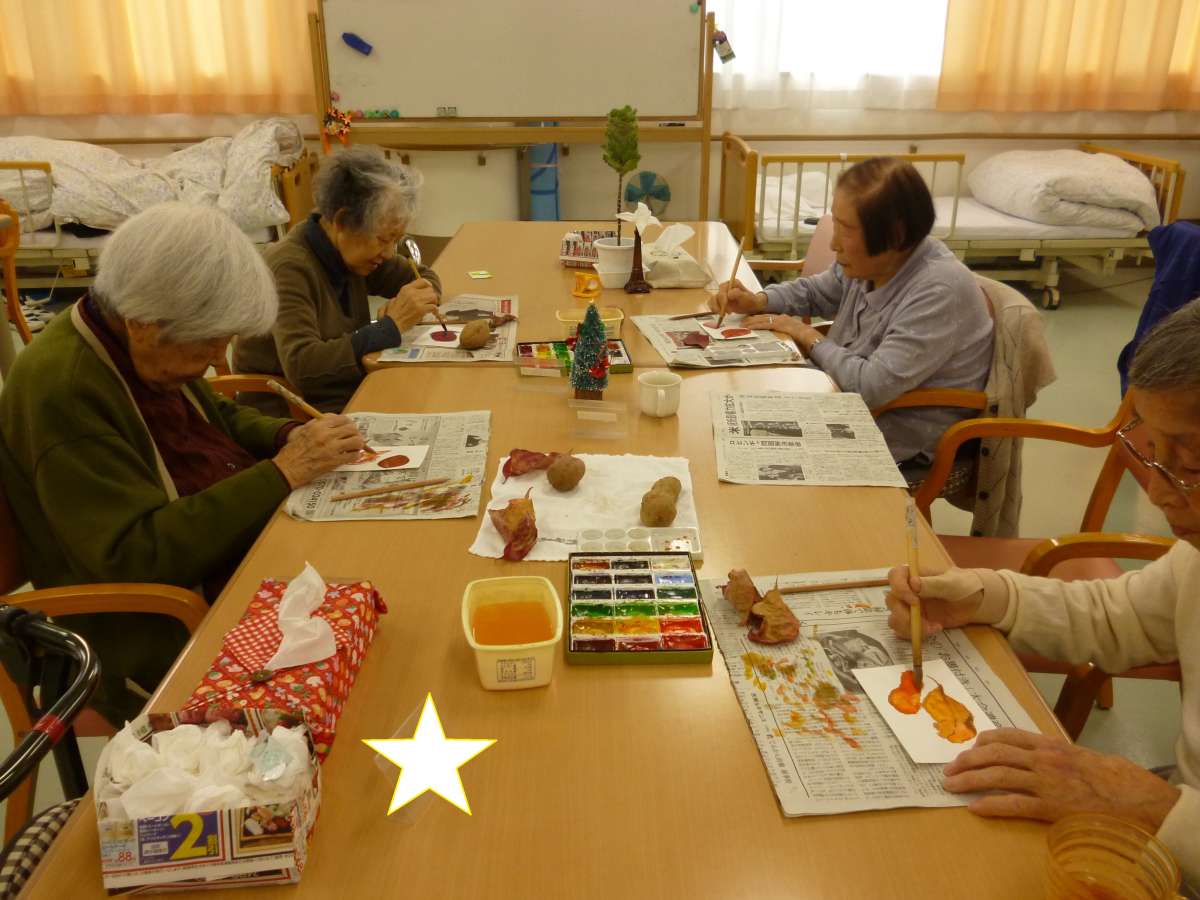 デイサービスセンター遊・戸田では、月に一度絵手紙レクレーションを催しています。今月はハナミズキの葉っぱと安納芋をモデルにして絵手紙を書きました。皆さん会話も弾み、楽しみながら書かれていました♪