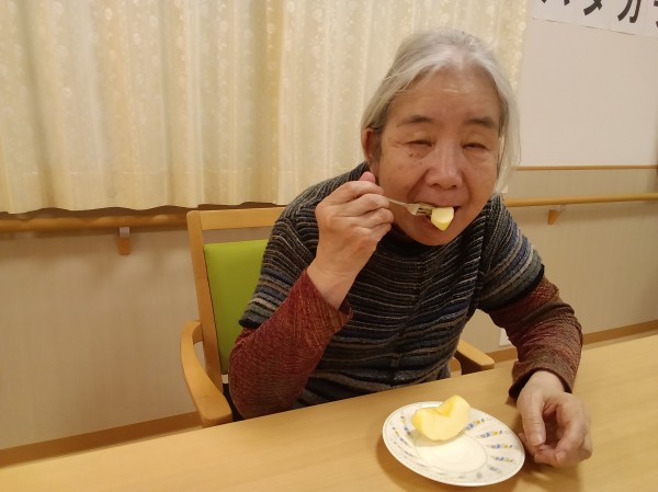 入居者様に剥くのをお願いすると、するする~とあっという間に剥いて下さいました!