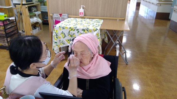 施術後に、スタッフより、「どの色の口紅にしますか?」と聞かれ、ご自分で選ばれ、メイクアップが終わり、鏡をご覧になられ、うっとりされており、満足されておりました(^^♪。