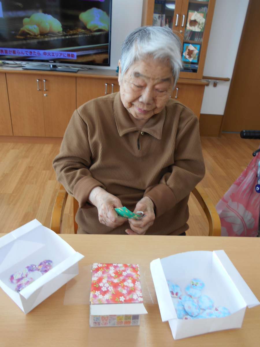 「キレイな柄ねぇ」 「やっぱり千代紙は素敵ね」などと会話も弾みながら作業して