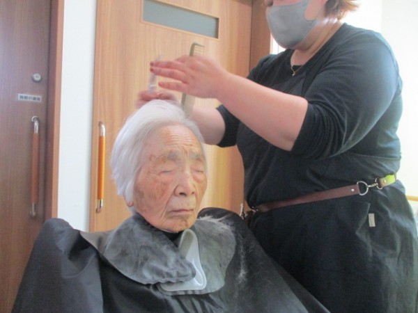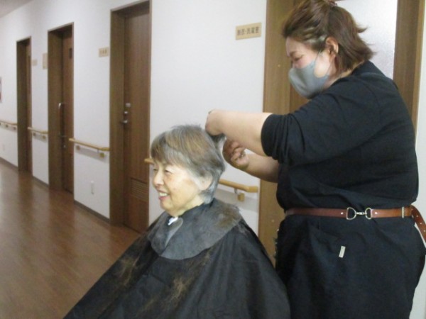 今日は2階・訪問美容(カット)を行いました。そのご様子をお知らせいたします。