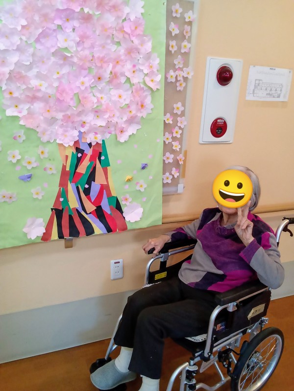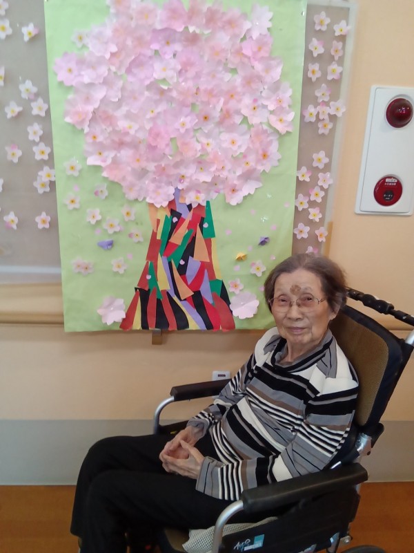 グループホームみんなの家・中野鷺宮 「花の壁飾り」の前で