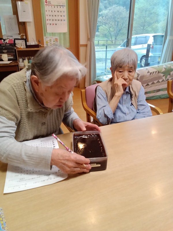 ……という話を入居者の皆さんにしたところ、かなりの大ウケで、話の流れで「たまには大きい羊羹食べたい」という事に。