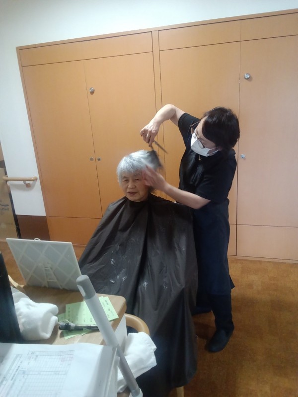 『訪問理美容』は、2F・3Fフロアに分けて、2カ月に1回のペースで、カットをお願いしております(^^♪。ご利用者様の中には、『カットを楽しまれている方』や、『カットを通して、美容師さんと、どの髪型にする等、コミュニケーションを取るのを楽しみにされている方」もいらっしゃいます☺。