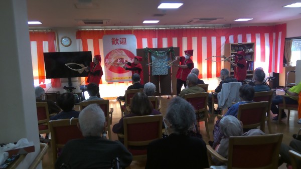 先日、1階デイサービスセンターで「南京玉すだれ」のイベントがあり、すこや家からも参加させて頂きました。