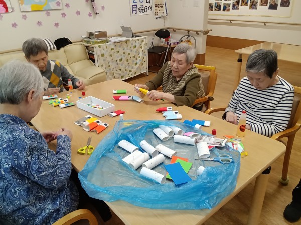 数日前の出来事、1階のご利用者様で何か作っていました。