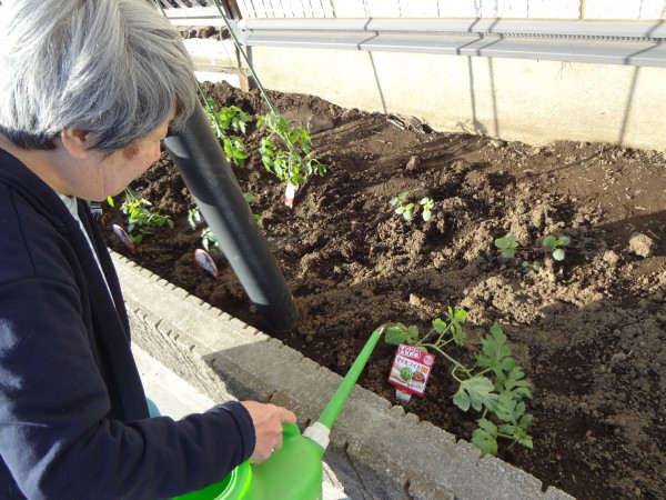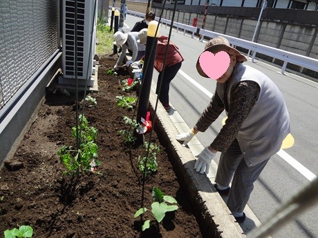 野菜の苗を植えるために、皆さんで畑仕事をしました(^^♪