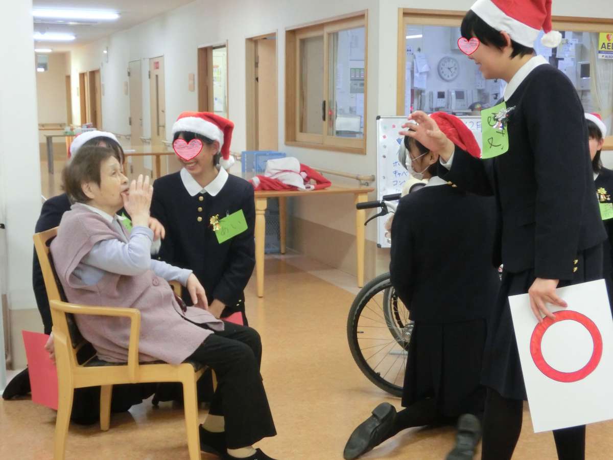 挨拶を終え、生徒方々と入居者様交えて『あわてんぼうのサンタクロース』『ジングルベル』2曲を合唱、併せて『クイズ大会』も開催!!