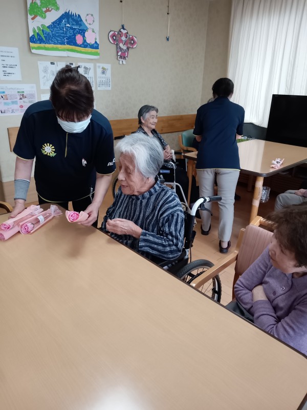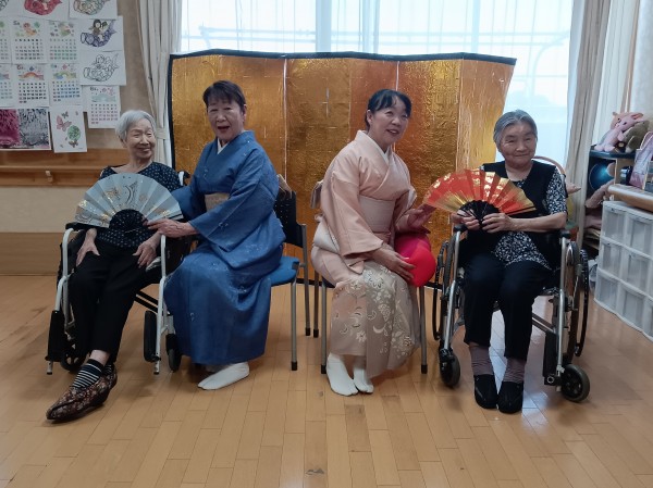 普段からご自身で着付けをされ、着物をお召しになられているご利用者様に今日は特別に帯を締めて頂きました♥
