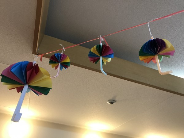 6月に向けて傘を作って飾りました(*^▽^*)