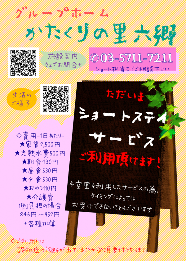 **現在、空室あり!ご入居もショートステイも是非お問い合わせください♪**