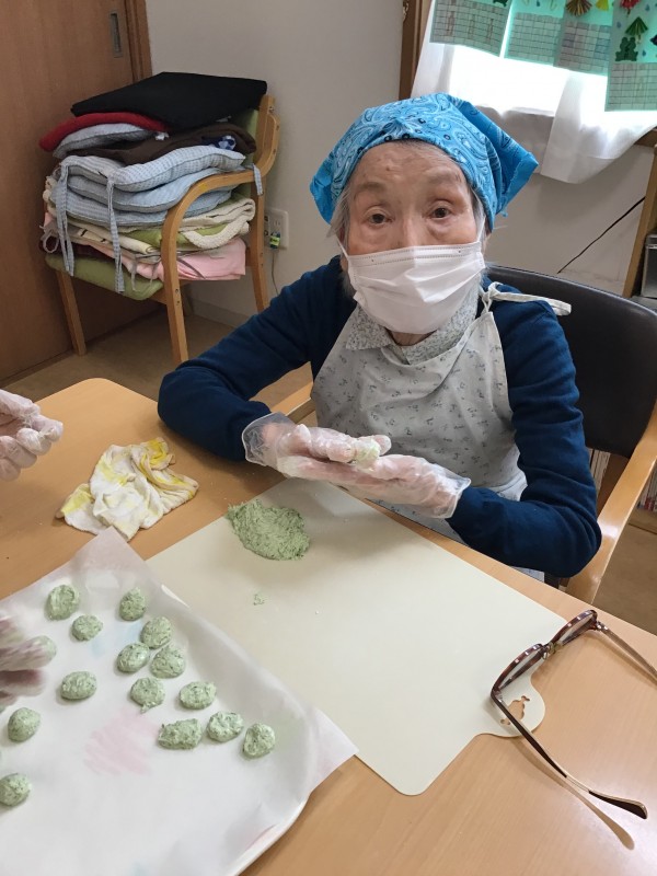よもぎのいい匂いがわずかにしてきて、リラックスされながら作られていました。
