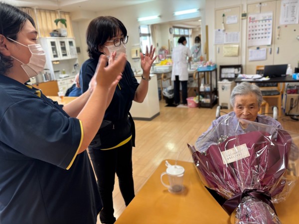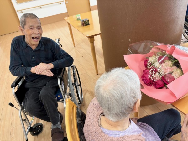 そして南中丸のご利用者様や職員にも花束のプレゼントをご用意していただき、ご家族様には心から感謝いたします