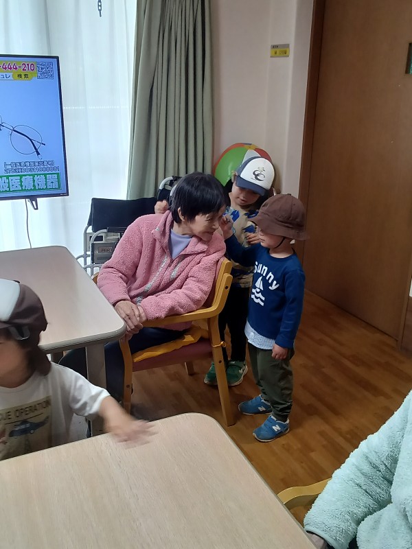 歌の後は、ご入居者様の肩たたきで触れ合って頂けました。