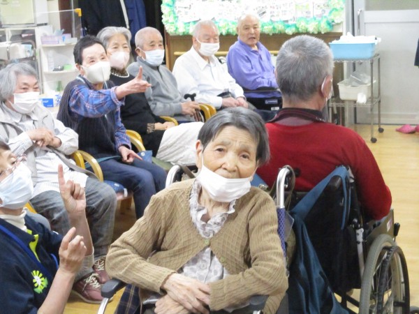 今回は、ご利用者様同士で楽しんでいただいたレクリエーション「あっちむいてホイ」のご紹介です。