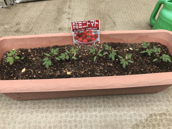 種から育てたミニトマト。大きくなったのでプランターに引越しです!