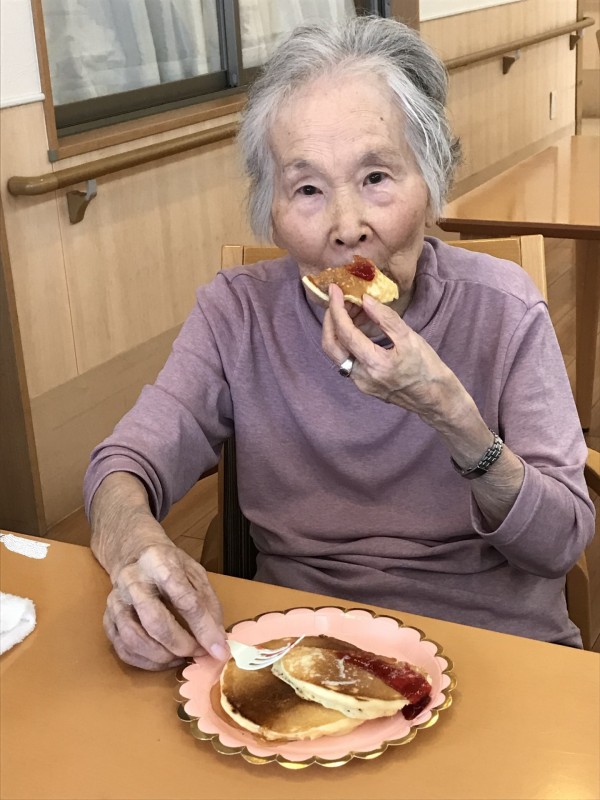 おやつには手作りパンケーキを皆様と一緒に作りました( *´艸`)