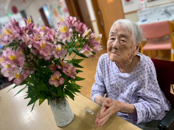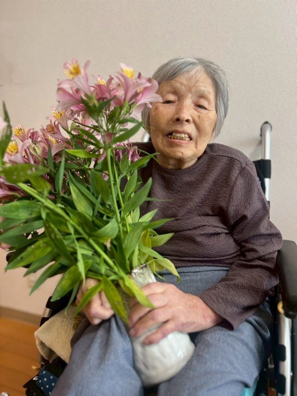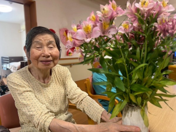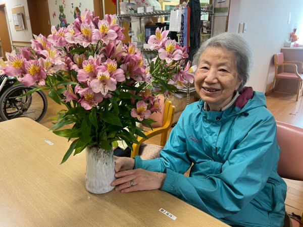 今回、ご利用者様の娘様がご自宅で育てたアルストロメリアを、わざわざ持参してくださいました。