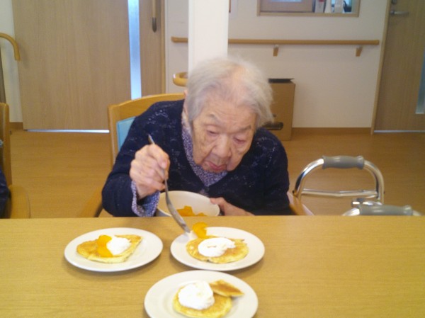 今日はおやつレク真剣に作る姿をご覧ください。