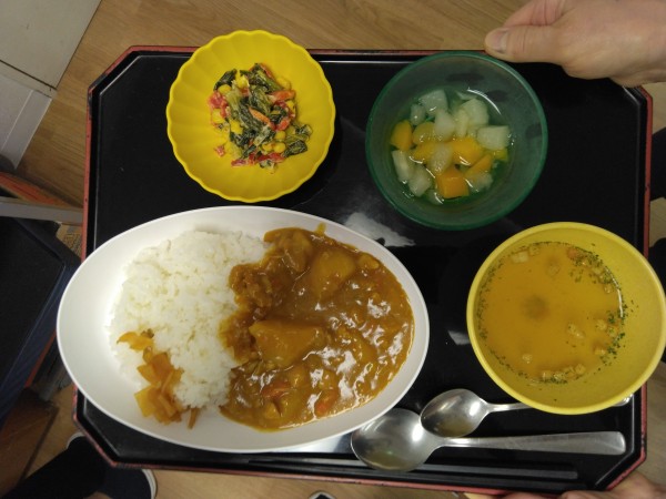 本日のお昼のメニューは「チキンカレー」です( ^)o(^ )