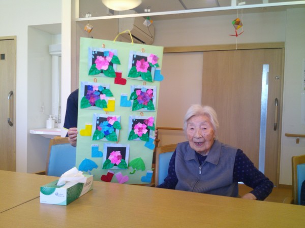 6月の季節の紫陽花工作を入居者様皆様で楽しく行いました(^^)