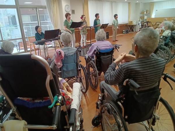 ご利用者様が1Fに降りて皆で歌い楽しみました。
