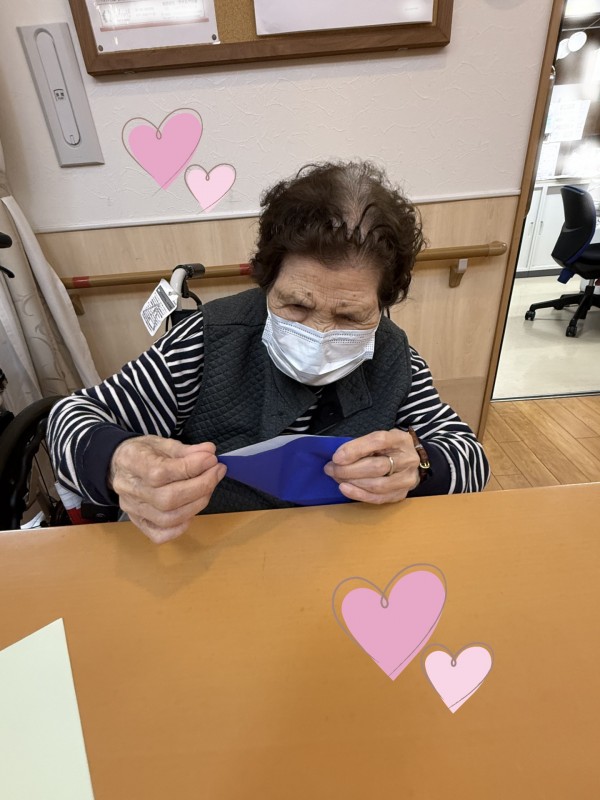 「見えないんだよー」「難しい」と言いながらも細かいお花をたくさん折ってくれました♡