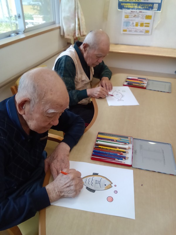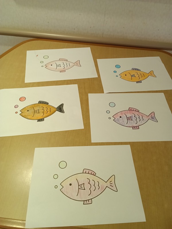 皆さんとても丁寧な仕上がりで、カラフルな魚が出来ました。