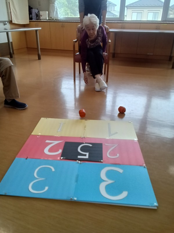 3球ボールを投げ、止まったところの得点が高い方が勝ちです。