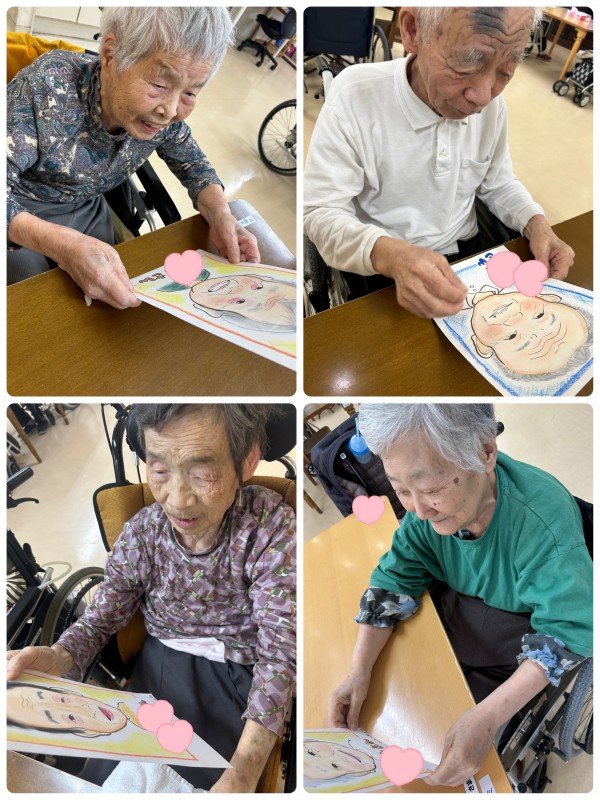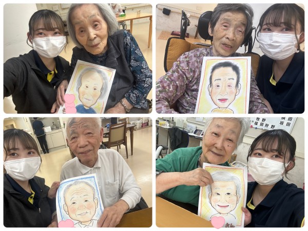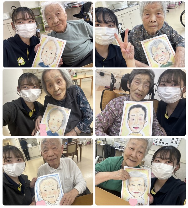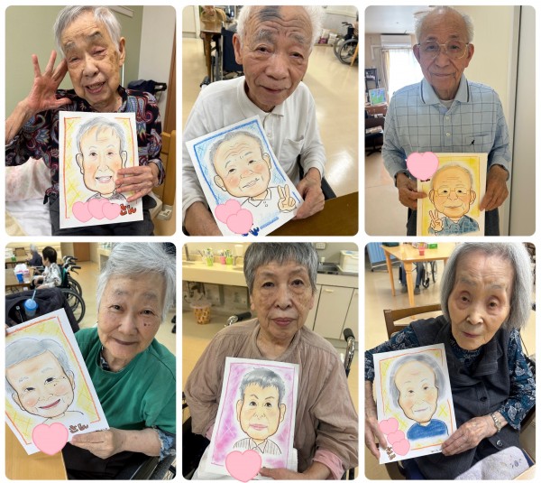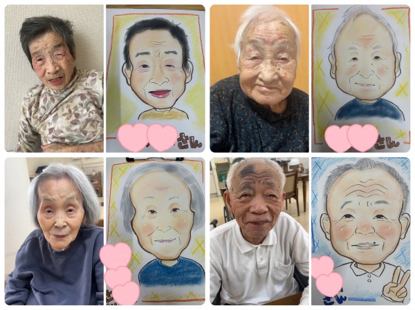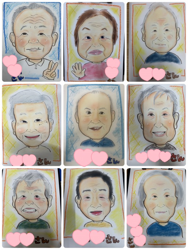 水野の趣味にお付き合いいただき、入居者様にモデルさんをしていただいている似顔絵ですが