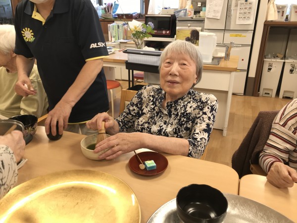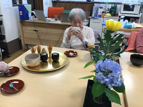 1階の皆さんもお茶を点てて、美味しいお菓子を前に笑顔がみられていましたよ♬