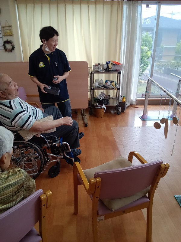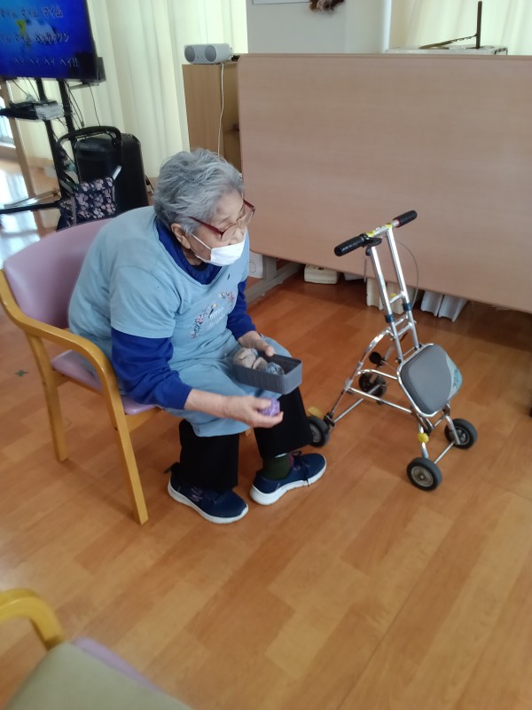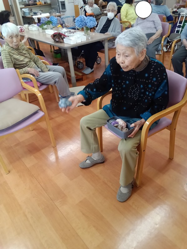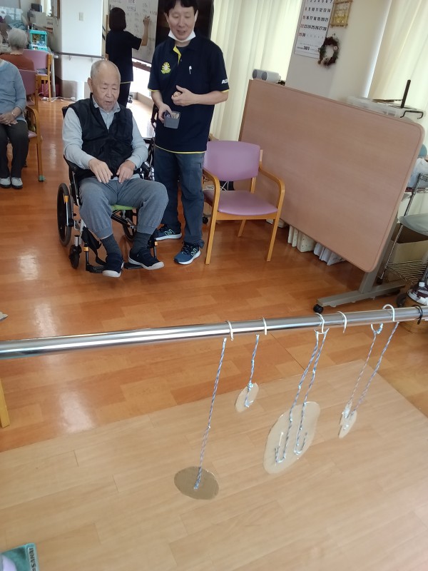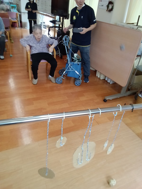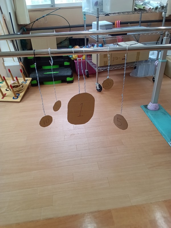お手玉を投げて当たった得点の合計点で勝敗を決めます。
