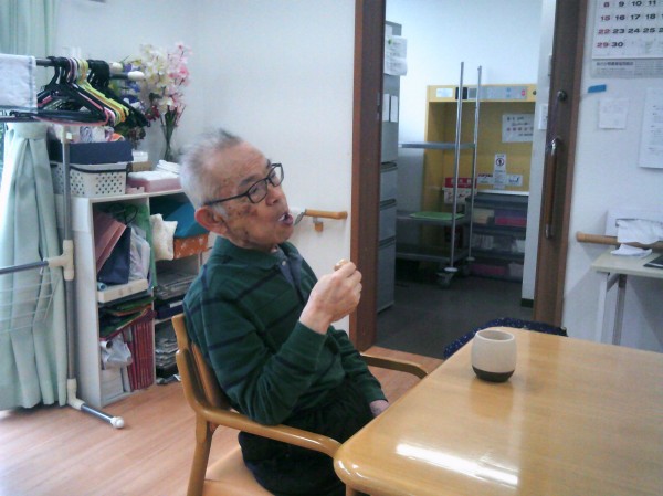 おやつにアイスクリームを美味しく召し上がりました。「誕生日会? 忘れてたわ?」と仰られていました(^0_0^)