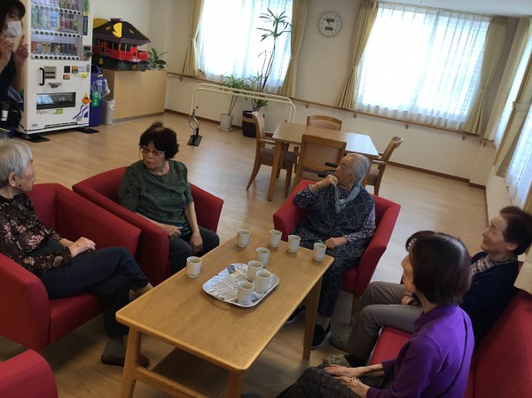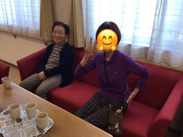 2階のソファーで毎日高齢の女子会ですが、今日は何やら話が盛り上がっていました。