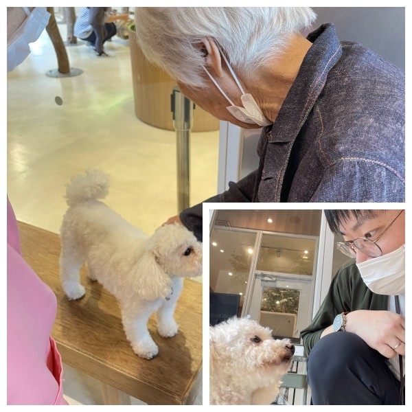 犬のふれあいコーナーで、茶色いプードルがひょいとY様の膝に飛び乗ったそのとき、Y様の表情がふっと変わりました。