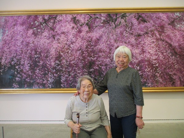 館内には、現代リアリズムの巨匠・三栖右嗣氏の迫力ある絵画が数多く展示されており、その写実的で力強い作品に、皆様じっくりと見入っておられました。「この果物の絵、写真みたい!」「花の絵がとても印象的だった」と感性豊かな感想が飛び交い、会話も弾みました。そして何よりも印象的だったのは、作品を眺めながらカフェで頂くおはぎと飲み物!アートと甘味の贅沢な組み合わせに、「絵を見ながら食べるおはぎなんて初めて」「これは最高ね」と皆様大満足のご様子でした。記念撮影ではお気に入りの作品を背景にパシャリ!帰りの車内でも、「また行きたいね」と嬉しい声が聞かれました。