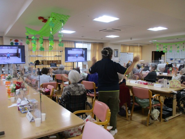 本日は、画面越しに講師の先生とつながって、「いきいきリズム体操」を行いました!