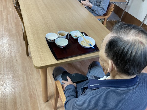 今日のお昼の献立は御飯・味噌汁・マーボー豆腐・さつま芋のいとこ煮・からし菜の和え物です。