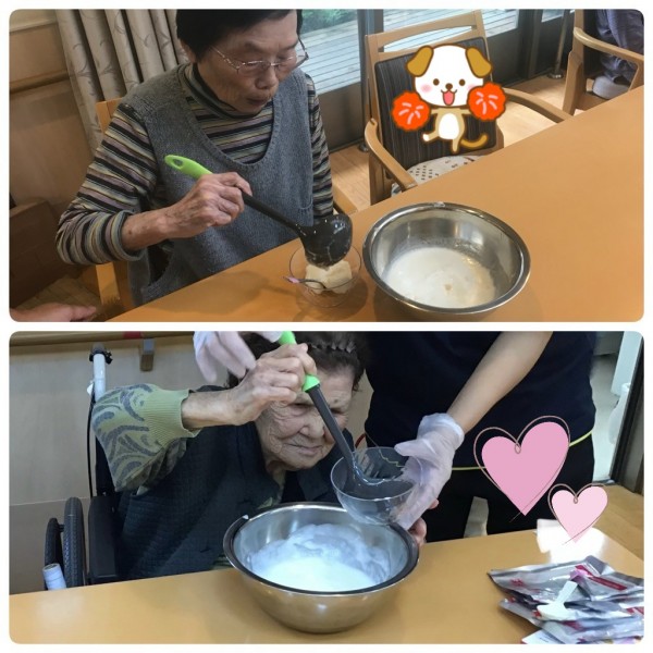 みんなの家大和田では、フルーチェを皆様に作っていただき、フラワーソープを男性利用者にプレゼントしました♡