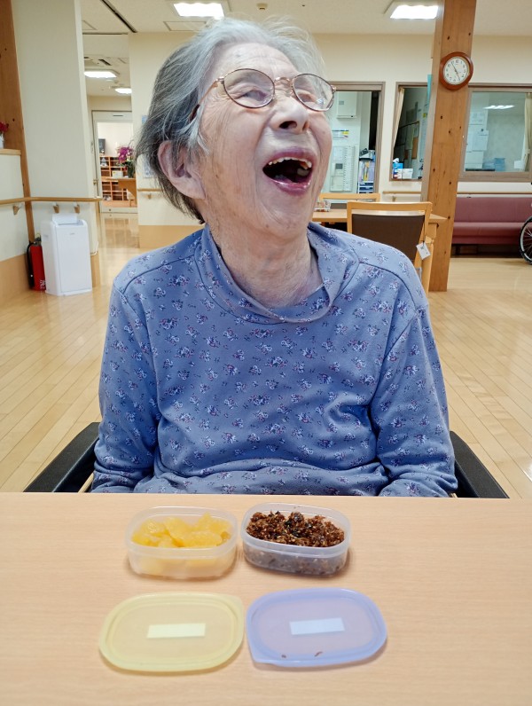 今回ご利用者様がご家族様からの差し入れをおいしそうに