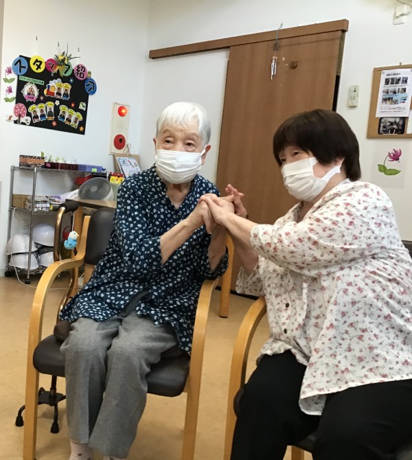 見つめあって一緒に体操をすると気持ちもひとつになってきたように、お身体もしっかり動かすことができていました。