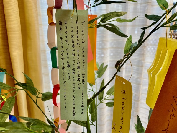 来たる七夕に向けて、お客様に短冊を書いていただきました!
