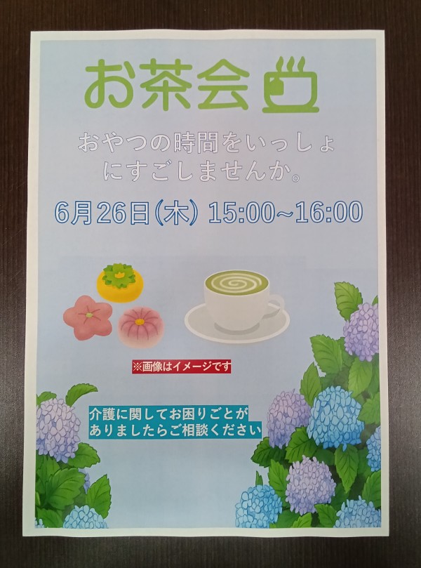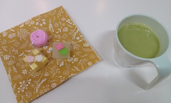 本日、6月26日におやつレクとして和菓子風のゼリーと抹茶ラテを提供させていただきました。