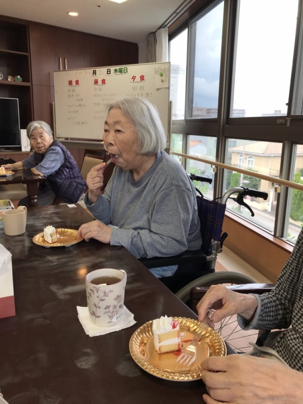 昨日、15時のおやつにショートケーキが提供されました♡