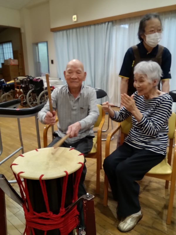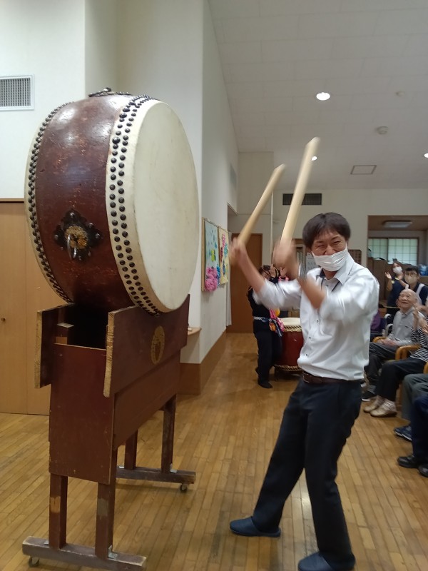 天候が悪い中地域の方々も参加頂き、それぞれに太鼓を叩いていただいたり