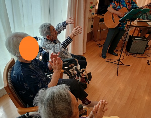 入居者の皆様は、手拍子をしたり、一緒に踊ったりと、とても楽しまれておりました♪