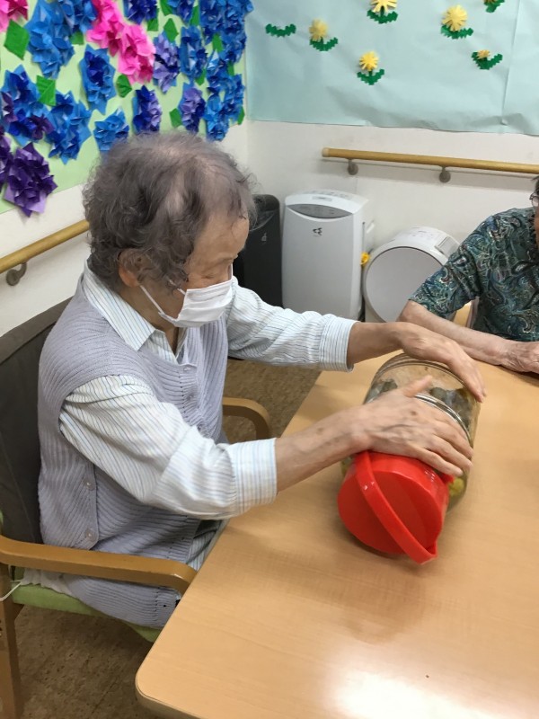 本日は、皆さんで行った「輪投げ大会」のご様子と、梅ジュースの進捗をお知らせしたいと思います!