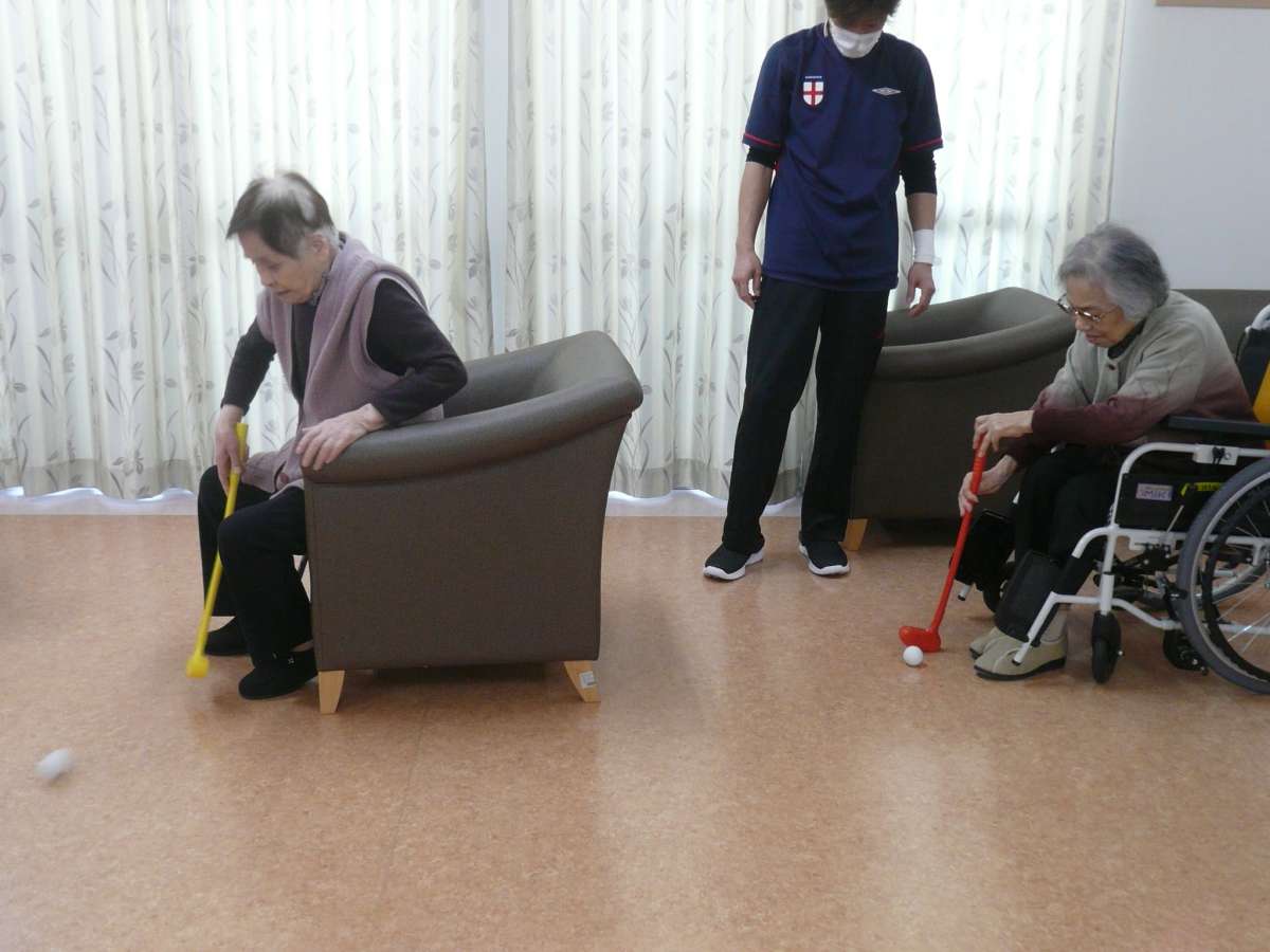 今回、各階合同で坊主めくりの他にパターゴルフを催しました。