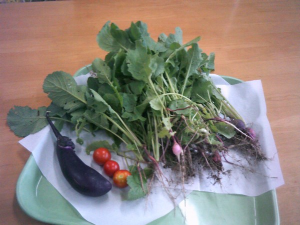 ナスはちょっと小さかったです。はつか大根はちょっと育ちが良くなかったです。 天候のせいかしら?(笑)